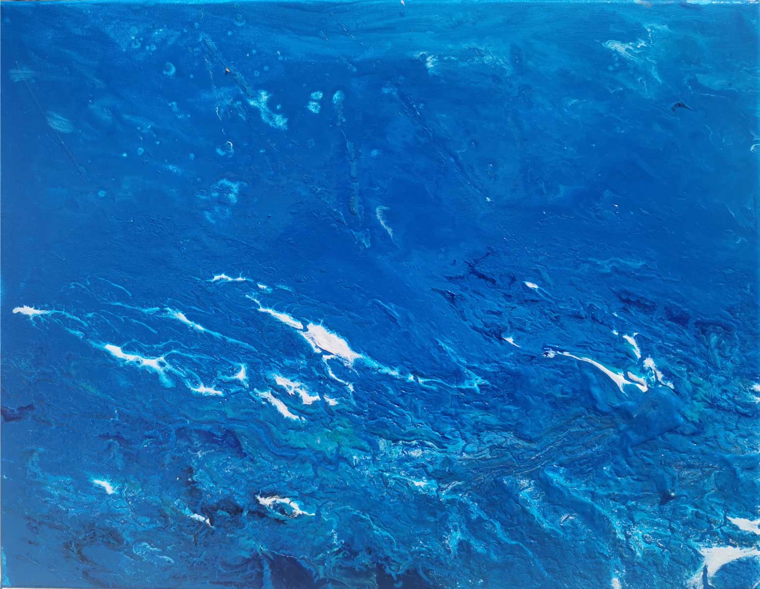 Želela sem si zimskih in modrih barvnih odtenkov, ki sem jih našla pri Uli G. Lipowitz. Njena slika v stanovanju lepo izstopa in interier prinese še kanček individualnosti in topline.