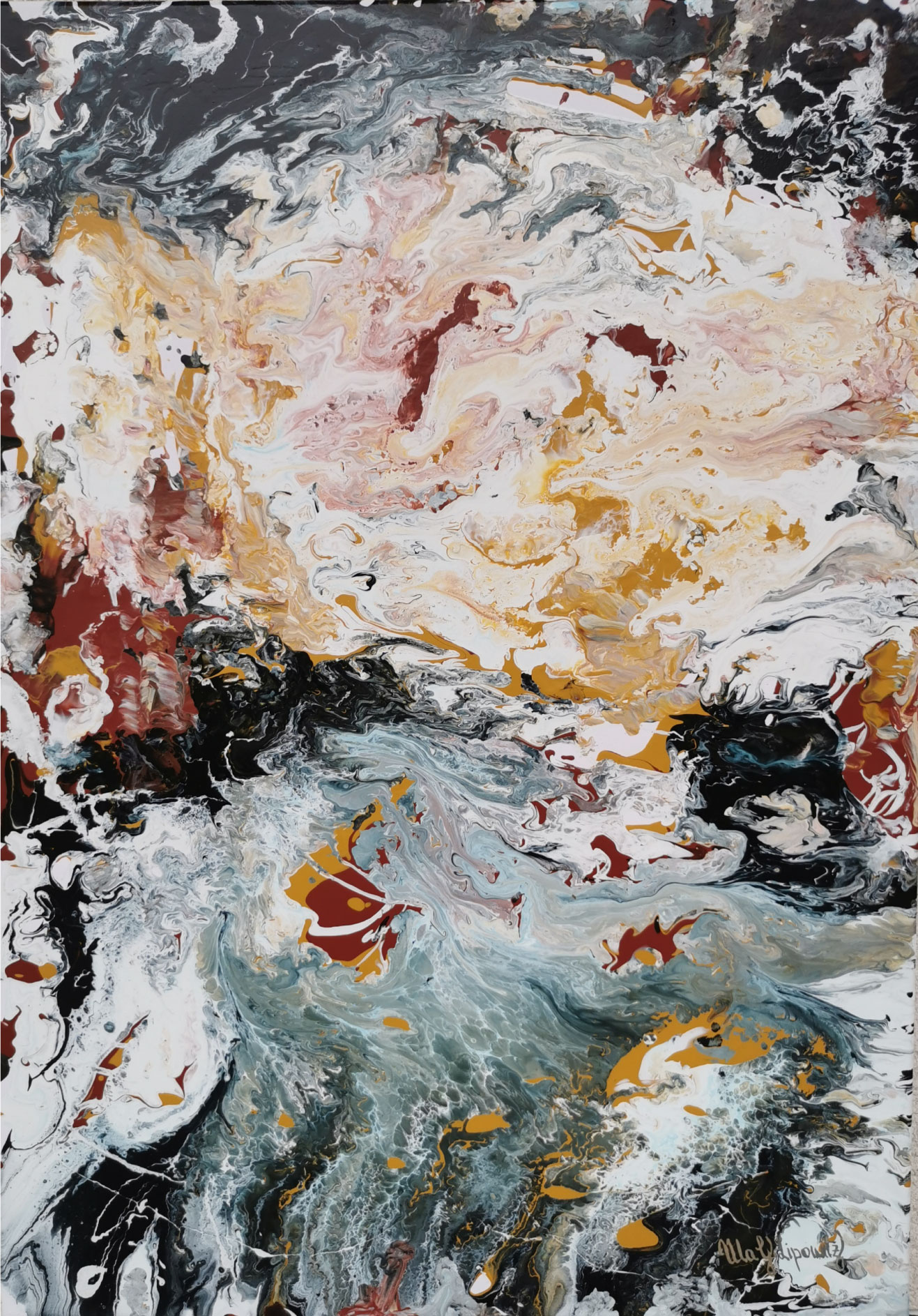 Slika “Nenadzorovani ogenj” mi je takoj, ko sem jo zagledal v ateljeju, padla v oči. Fascinantno je, kako lahko v njej zaznaš več plasti čustev. Pogled nanjo v meni sproži posebne emocije in strasti, zato je prostor v spalnici ravno pravšnji za njeno lokacijo. Neverjetno se mi zdi, kako je avtorici uspelo v njo vnesti tako jezo kot strast. Obžalujem, da je še nisem spoznal, ker je sigurno zelo strastna in zanimiva oseba.